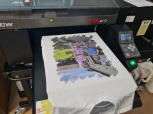 Druk DTG czyli “Direct To Garment” to nowoczesna metoda bezpośredniego zdobienia tkanin i odzieży. Technika DTG umożliwia naniesienie dowolnej grafiki na tkaninę bawełnianą lub bawełnę z domieszką elastanu/ wiskozy. Grafika tworzona jest za pośrednictwem specjalnej drukarki. Sprzęt, którym dysponujemy w naszym parku maszynowym to najnowszy model drukarki Brother GTXpro Bulk, która dzięki przemysłowym głowicom szybko drukuje bezpośrednio na materiale. Nadruk techniką DTG umożliwia idealnie odwzorowanie barw razem z przejściami kolorystycznymi. Bez konieczności przygotowywania projektu, istnieje możliwość nadruku już od jednej sztuki.